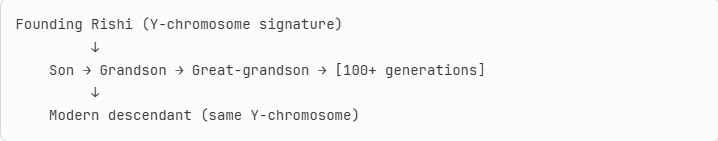 The main focus of my research is to show how gotra can be connected to genetic ancestry in mankind through the analysis of Y-DNA to establish the paternal line of males in families. The Y-DNA of a paternal ancestry line can be traced from son to father through multiple generations by use of Y-DNA.