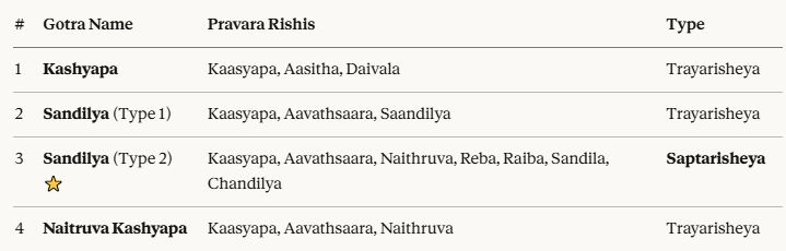 Note: Common Gotras: Bharadwaja and Gautama are prevalent gotras all across India.